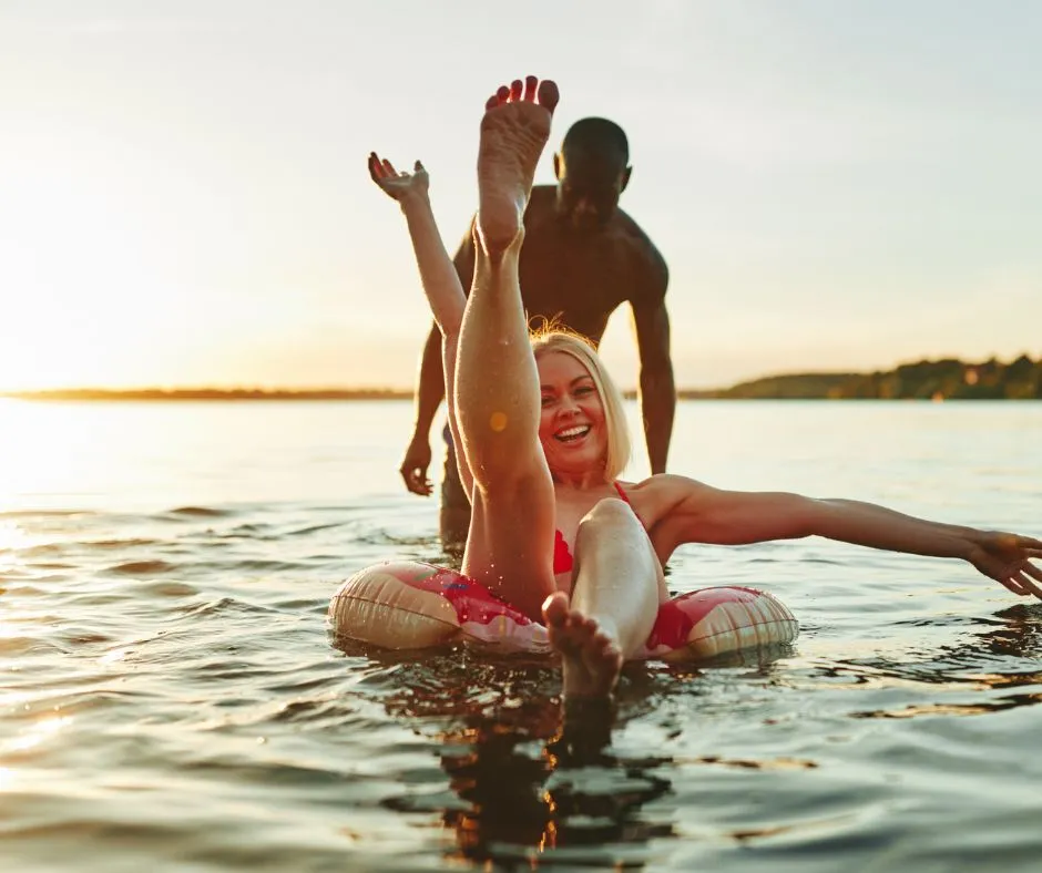 Open water swimming is swimming in outdoor bodies of water such as oceans, lakes, and rivers. It can be done recreationally or competitively. Many swimmers enjoy the freedom and the connection to nature that comes with swimming in the open water!
